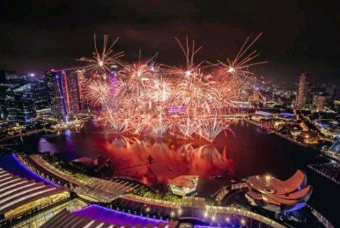 烟花将在10点燃放,时长三分钟,由Glorious Singapore呈献。