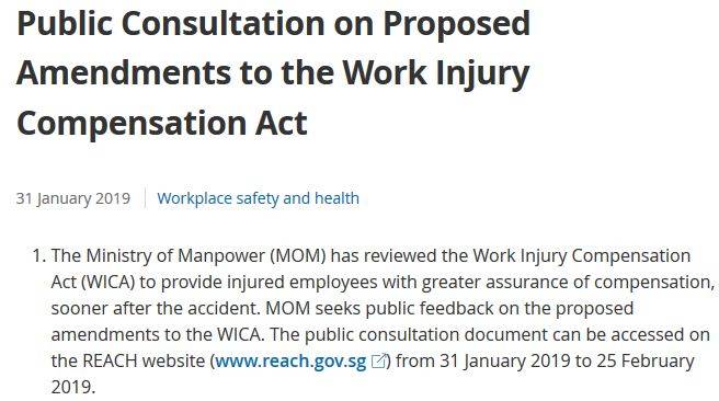 新加坡人力部1月31日发布公告,宣布就修改工伤赔偿法展开公共咨询,邀请公众和业内人士对修正建议发表意见。