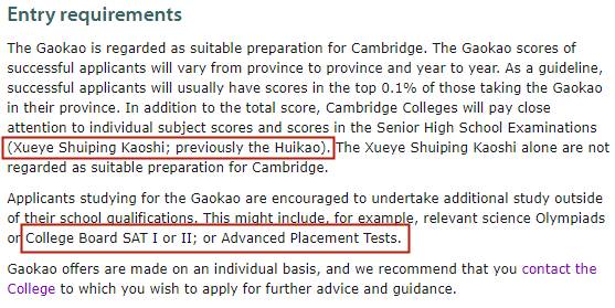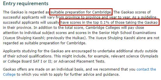 英国剑桥大学接受中国高考成绩