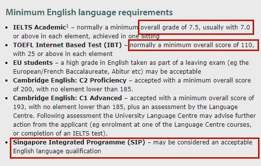 对于新加坡申请者没有语言要求