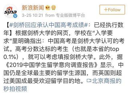 炸锅!中国高考成绩被剑桥大学承认!分数线低于清华北大?