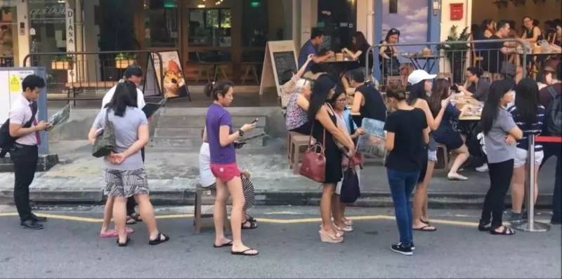 新加坡人的排队文化根深蒂固,排队的美食也分成两种:一种是短暂的风潮,虽然刚登陆时火爆异常,但过两三个月就门可罗雀了,例子包括咸蛋羊角面包、Pokemon Cafe等等。