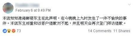 上述事件是于本月6日(年初二)晚上,在知知港海鲜楼酒家发生。
