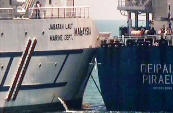 昨天下午,一艘希腊注册商船从新加坡开往马来西亚的港口时,与停泊在新加坡海域的马来西亚浮标船Polaris相撞。