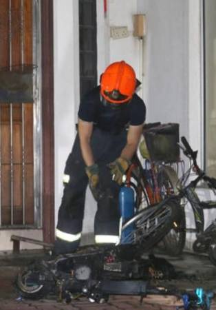 (新加坡10日讯)又一起电动踏板车引发的组屋火患,在客厅充电的电动踏板车突然冒出火花,紧接着起火狂烧,哥哥及时夺门逃,15岁的弟弟受困睡房,慌不择路从二楼跳窗逃命跌伤,一名警员也吸入过多浓烟入院。