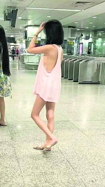 或许是女郎选择穿出门的背心裁剪太过大胆,布料又非常少,面对清凉女郎几次险些走光,网民陈小姐狠狠地落下一句:“这不是潮流,这是下流。”