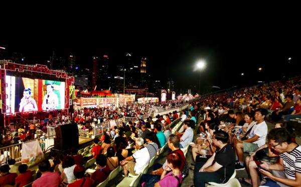 滨海湾浮动舞台的“春到河畔2019”周四办“歌台之夜”,吸引11万人到场,看歌台的不乏年轻人。 (档案照)