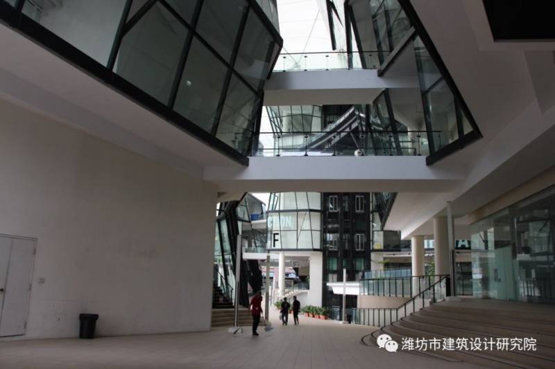 到达当晚下榻的酒店刚好在这所高校旁边,有幸近距离欣赏了这栋设计独具一格的教学楼,感受其所营造的空间效果。