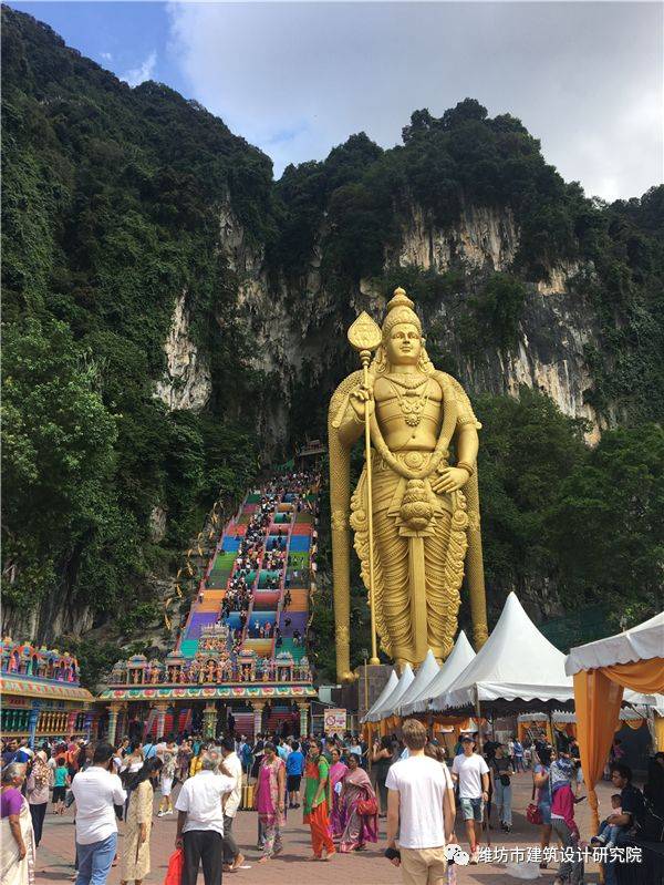 在黑风洞山脚下,伫立著一尊高达40米左右全身镀金的印度教战神穆鲁干王像,此尊神像耗时3年打造完成,甚是壮观。经过神像,沿着272阶的彩虹阶梯拾阶而上,四处可见野生小猴子,不抢不闹,很有灵性。