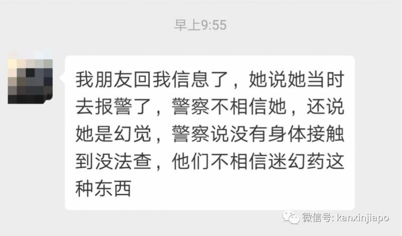 今天早上,网友朋友回复了消息,称当时便去报警了。但警察并不相信自己的说法,认为这可能是幻觉,并且与别人没有身体接触无法查证,不相信有迷幻药这种东西。