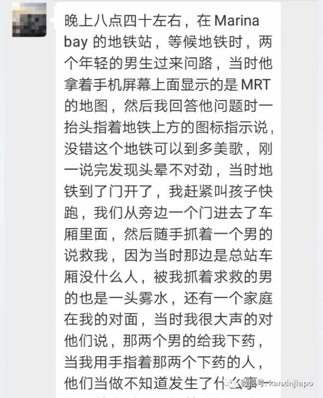 新加坡眼昨晚(2月9日)收到网友求助,网友称她和女儿在Marina Bay地铁站,疑似遇到迷药事件。去年3月,她的朋友也曾遇过类似情况。希望能借此提醒大家,出行注意安全。