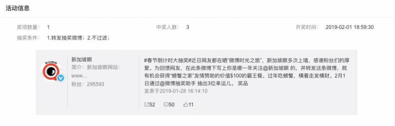 不过,在经历了2018的风霜之后,2019,幸运终于降临!刚一开年,新加坡眼使用抽奖平台选取的3位幸运儿中,就有他一个!他获得了螃蟹之家价值100新币的霸王餐!