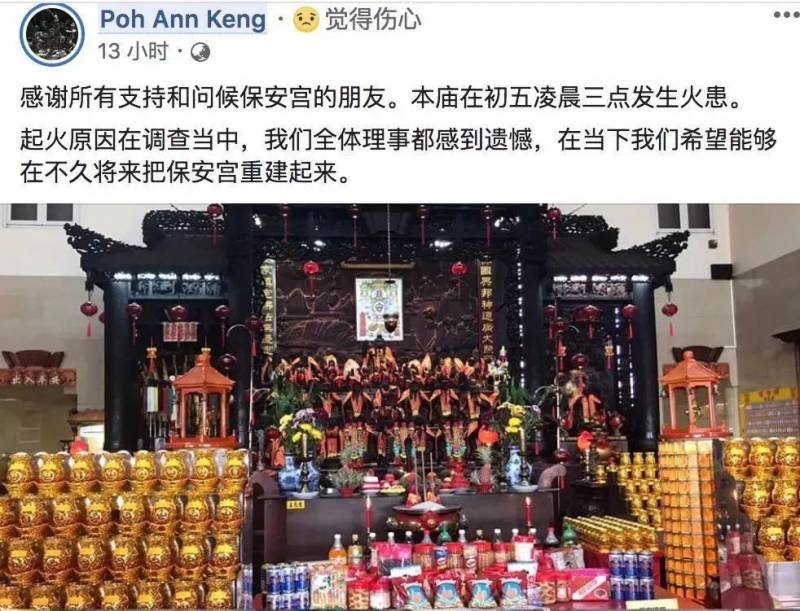 保安宫官方facebook发出po文告。昔日辉煌的神殿,如今面目全非,令人唏嘘。