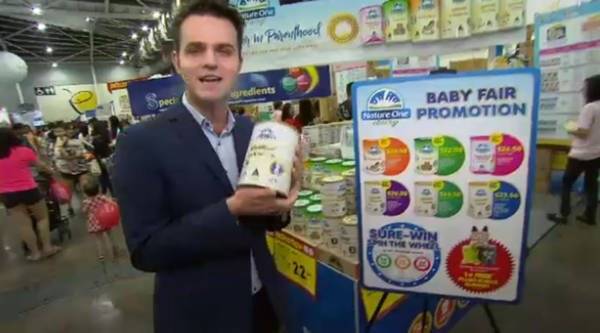 狂扫奶粉的录影画面,接着主持人出现在新加坡一个大型婴儿展销会,以一款名为“Nature One”的澳洲奶粉为例,将“狂扫奶粉”导致澳洲本土奶粉断货的矛头指向新加坡人。