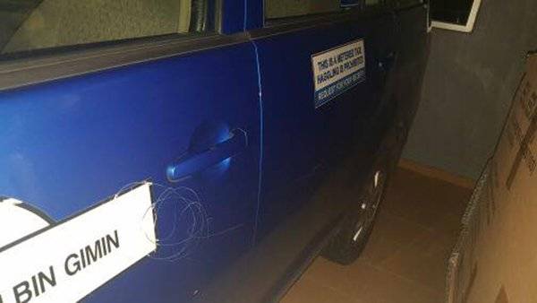 德士司机的德士车门也被刮花。