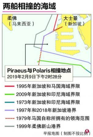 根据海港局文告,Pireas前天在新加坡勿洛以南的东部燃油锚地加油后,曾通报海港局,它的下一个停靠点是柔佛的丹绒柏勒峇斯港口。下午1时55分,Pireas驶进大士一带、新加坡港界内的海域,随后放慢速度、转换方向,与Polaris相撞。海港局的海港运作控制中心与Pireas取得联系后,曾指示它远离该海域,但为时已晚。Pireas报告说,它与Polaris相撞后,船身并未受损。