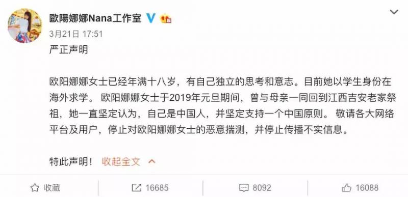 欧阳娜娜方回应