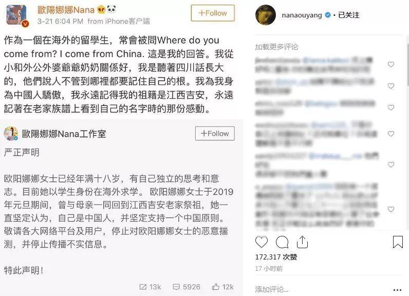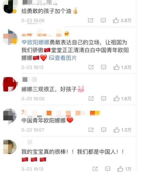 留言里支持欧阳娜娜