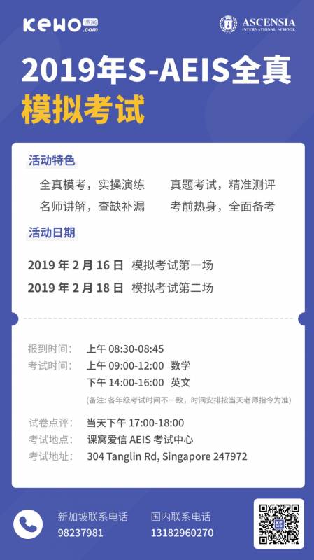 课窝爱信AEIS考试中心:(新加坡)