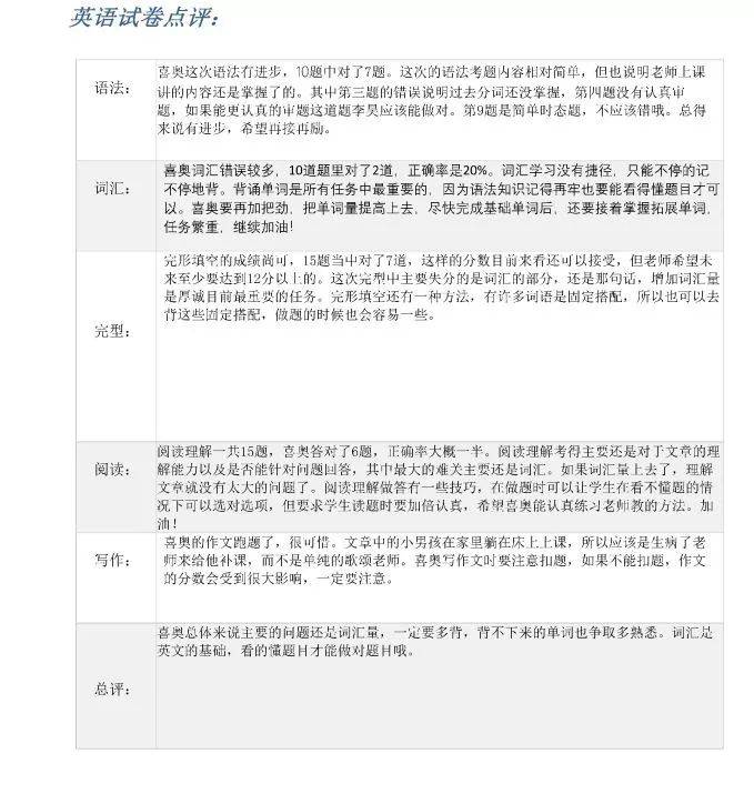 这是我们课窝老师对学生英语试卷点评的截图,老师对每个题型都进行了详细点评,从审题到失分原因,再到考点建议,深入细致!