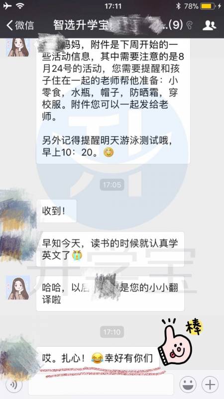 另外,升学宝的老师平时很关注孩子的学习情况,不时地来关心孩子有无遇到学习上的困难,及时提醒我关注学校老师发布的孩子学习动态,并帮我分析孩子的学习状态。