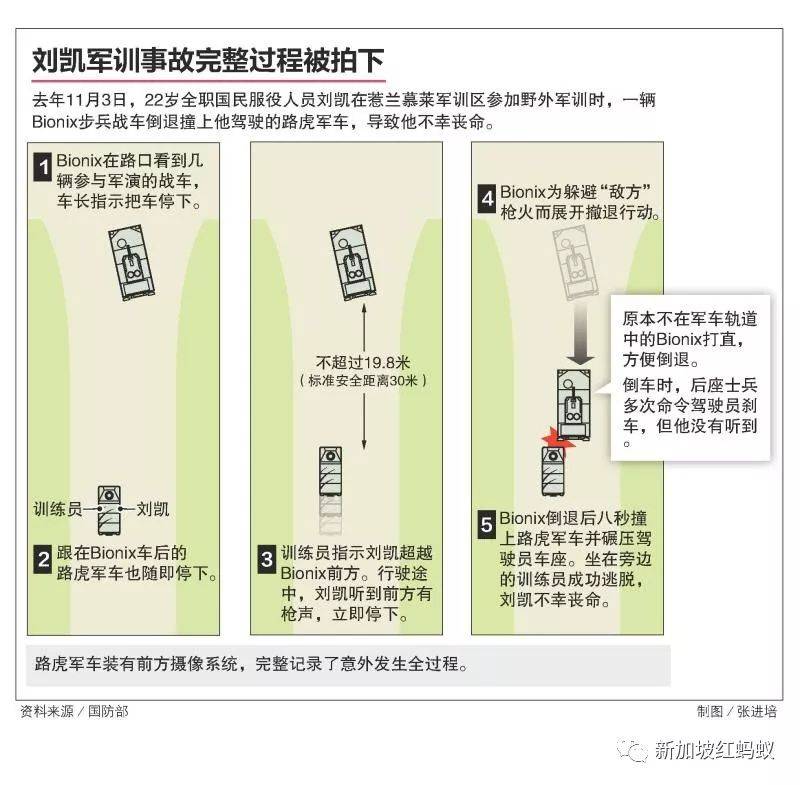 去年11月3日上午7点,新加坡武装部队第42装甲营在惹兰慕莱(Jalan Murai)军训区进行双边野外军事演习。身为运输操作员(transport operator)的刘凯被指派去驾驶一辆路虎(Land Rover)车,载着一名军阶为上尉的正规军训练员。