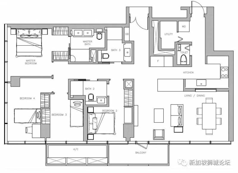 4. 四卧室单位,套内面积154平方米(1658平方尺)起