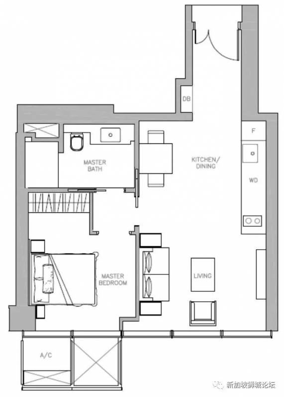 1. 单卧室单位,套内面积57平方米(614平方尺)起