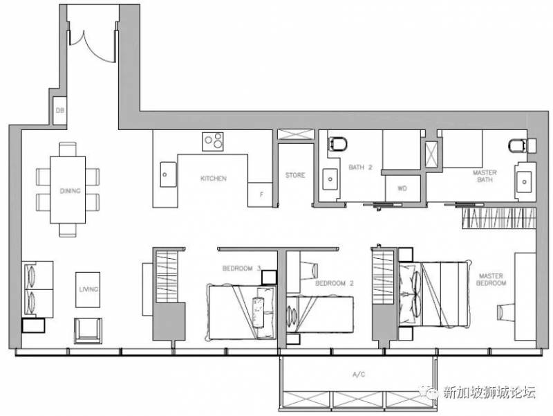 3. 三卧室单位,套内面积111平方米(1195平方尺)起