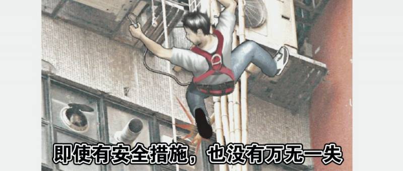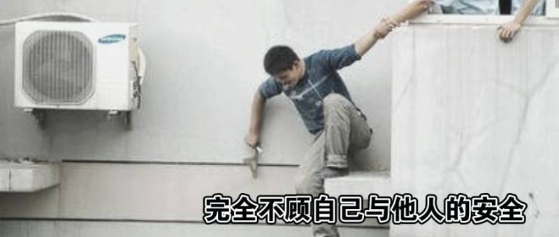 众所周知,即使没有专业培训,爬出窗外至少也要系一根安全绳吧,这什么措施都不搞,只为了证明新加坡空调铁架很牢固,而冒如此大的风险,确实太不值得了。
