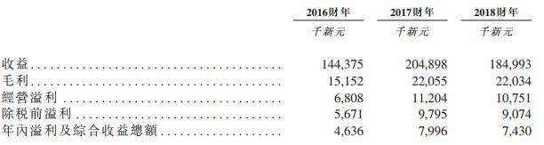 2016财年至2018年,冠轈控股实现收入分别为1.44亿、2.04亿及1.84亿新元。其中,汽车销售业务为其最大收入来源,同时期内,分别约占总收入的95.5%、96.1%及95.2%。毛利分别为1515.2万、2205.5万及2203.4万新元,净利分别为463.6万、799.6万及743万新元。2018年收益下降约2000万元,主要由于汽车销量减少导致。
