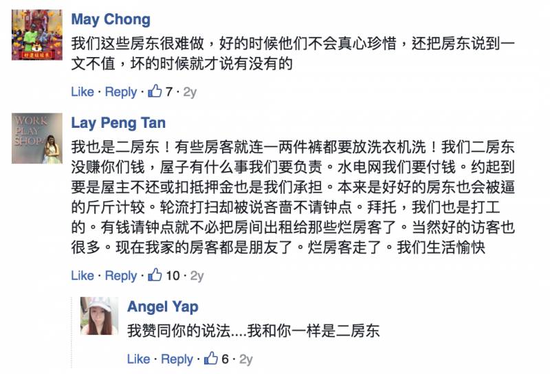 我一直都是不计较,不发火,什么都好好说的态度,但是最近看了好多黑心房东的文章,所以我觉得,黑心房东固然很多,但好的也很多,只是你们还没遇到, 所谓房客,你们只要做到当自己家一样就好了,那黑房东的话,你们就要该有的细节,押金,屋子里的东西,你们都要检查好好,发现不对就要及时说或者搬走,新加坡这么大,屋子这么多,还是能遇到好人的。