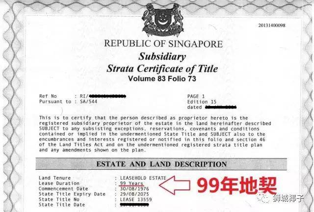 新加坡大部分房屋(组屋+私宅)属于租赁性质,租期通常为99年(Leasehold)。组屋99年地契的期限期满之后,组屋土地和房子就不属于屋主。公寓一般到期之前就会集体出售重新开始,或者填补。(详情见下部分)