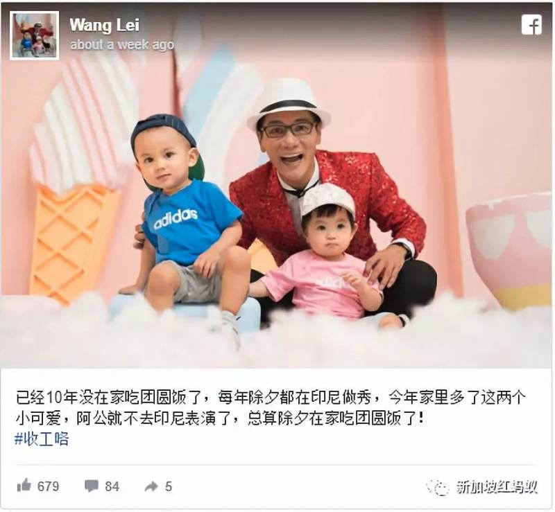 近年刚升级为祖父的王雷,喜欢在面簿上晒出和可爱孙女与孙子的合照。