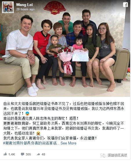事后,王雷也在面簿发文感谢陈志伟和刘燕玲的帮忙,感叹:“我以为这两样东西永远回不来了!” 如今,他们刚好在情人节和3月18日的结婚纪念日前重获了两样宝贵的爱情证明,真的是最好的礼物!