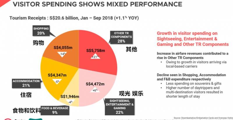 2、住宿花费占了21%,为43亿4700万新币,比2017年少了5%;