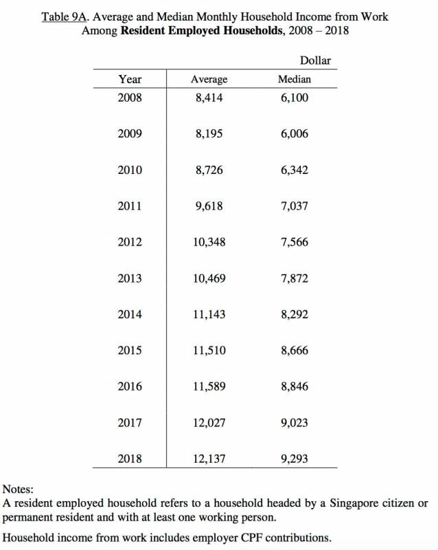 今天(2月13日),新加坡统计局公布了《2018年住户收入主要趋势》,其中显示新加坡家庭月收入平均数为$12137,中位数为$9293!