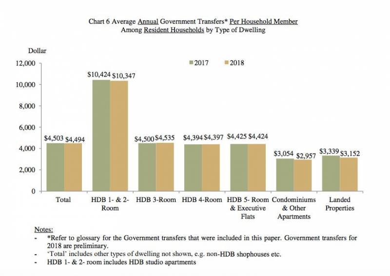 这些获得补贴的人中,一房、二房式HDB住户获得的补贴最多,人均达到$10347。而3~5房及公寓式组屋住户获得补贴则在$4424~$4535不等。