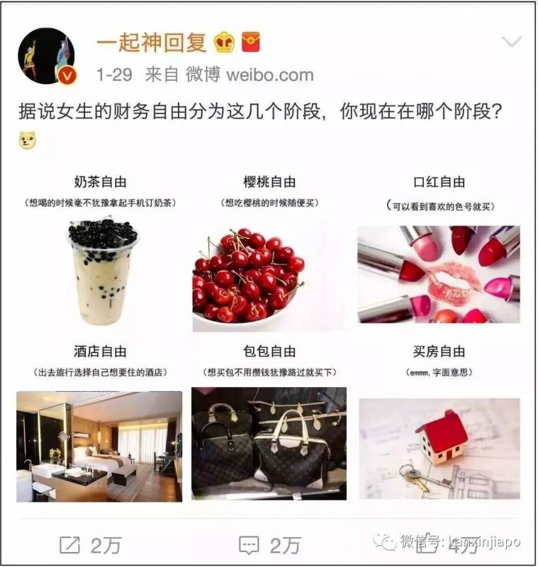 有人把女生财务自由从低到高分为15个阶段,最基本的是辣条自由,然后是奶茶自由、视频网站会员自由、外卖自由、车厘子自由等......于是,车厘子成了新的炫富单品~