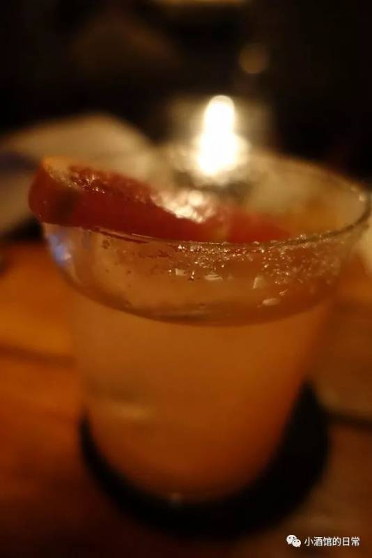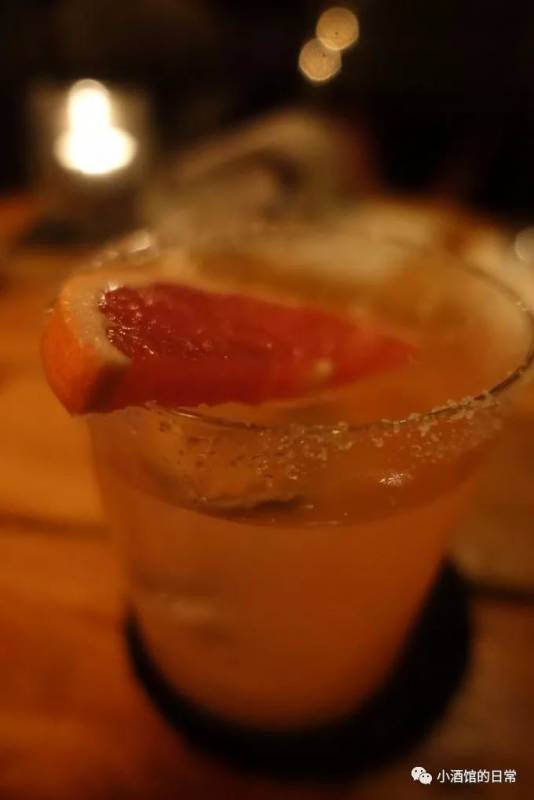 第二杯点了一杯Salty Dog。凭心而论,我觉得这杯调的不太好喝。每一只葡萄柚都有区别,因此若是用新鲜水果来调制鸡尾酒,更需要调酒师精准的舌头。我想我这只葡萄柚就苦胜于酸,但是调酒师并没有在意。于是我也不论这 盐边 是不是粉色的喜马拉雅盐,不好喝就是不好喝。