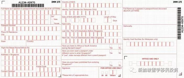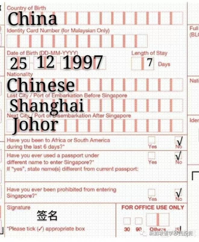 需要来新加坡考察旅游的朋友请详细看下面入境卡填写方式