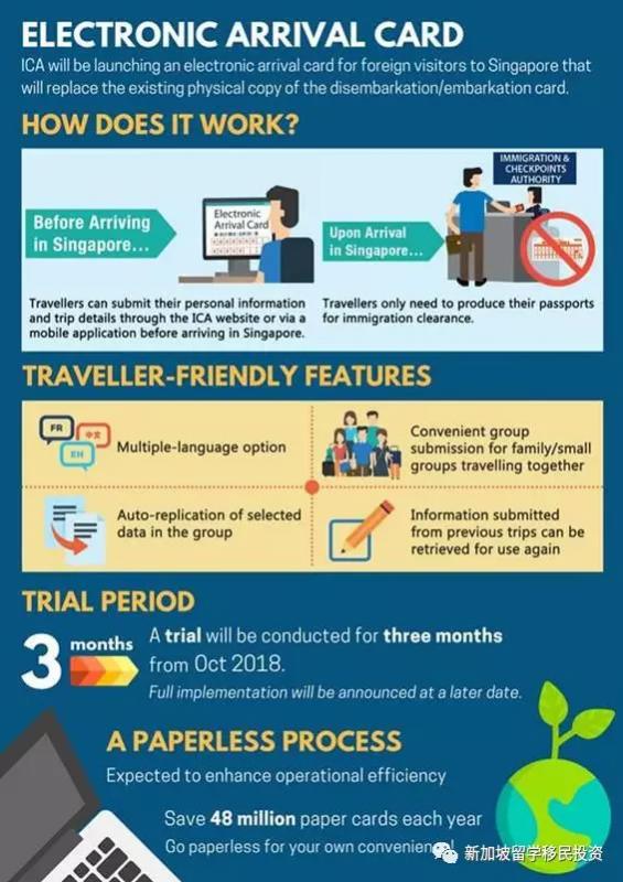 这项计划并不会影响新加坡公民、永久居民和持有工作证和学生证者。至于全面落实电子入境卡的详情,将于试验计划结束后公布。电子卡计划不仅仅能提高效率,还年省4800万张入境卡,走向无纸化入境程序哦!