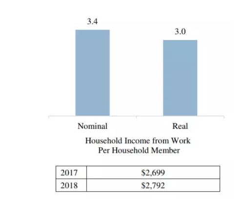 从2013年到2018年,家庭中位数收入每年上涨3.1%,5年来累积上涨了16.6%。