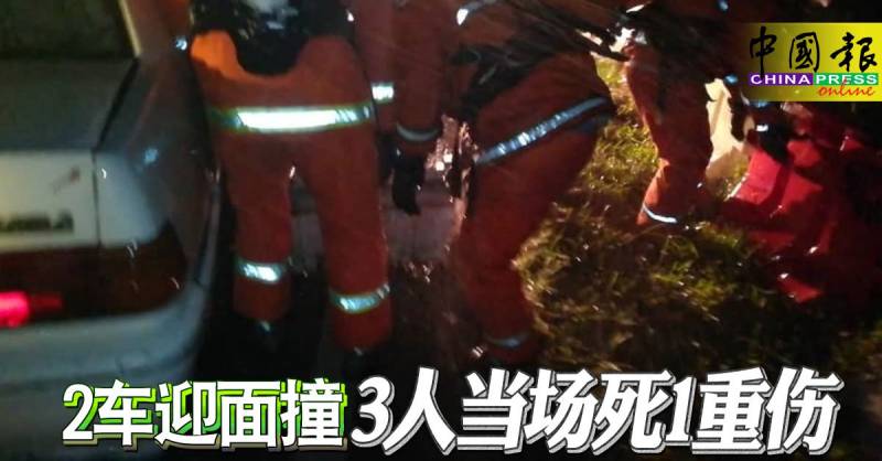 (怡保13日讯)两车迎面相撞,造成3死1重伤!