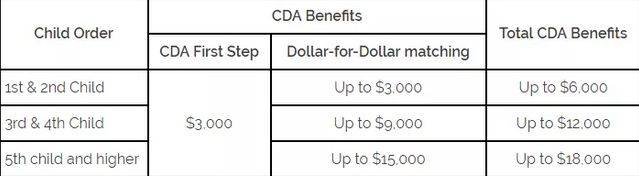 开通CDA儿童发展账户家长存钱政府等额匹配,不过数额也是有上限的
