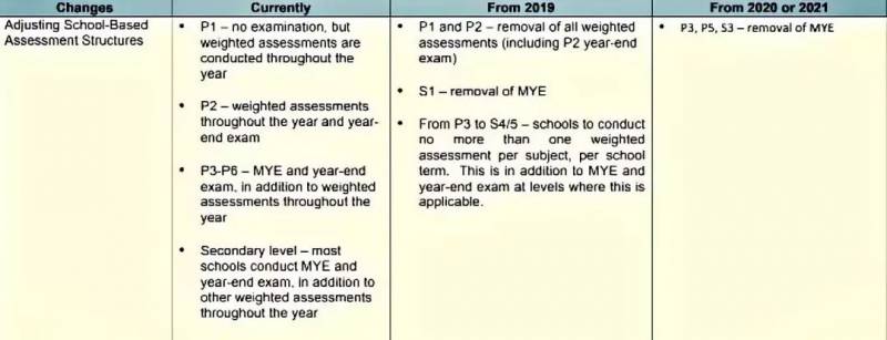 中一学生将不再有年中考试。取消年中考试将为每个两年制单元(P3和P4、P5和P6、S1和S2、S3和S4)节省多达三周的课程时间。学校将利用这段时间进行教学和学习。