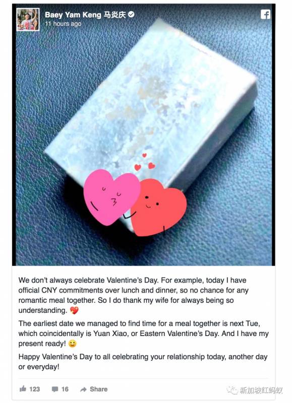 从照片中看起来,马炎庆准备了一个小礼盒,红蚂蚁猜他要送一条项链吧,真宠老婆!同上,女生们也可以把这篇贴文给另一半看,教育一下。