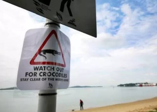 由于鳄鱼出没的事件时有发生,为了防止游客受到惊吓,新加坡在水域旁还专门设立了警示牌...