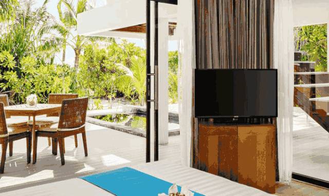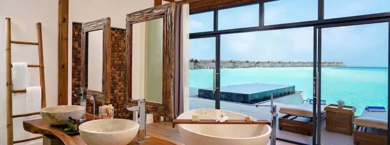 140 平方米海景水上泳池别墅设有落地窗,可将户外美景尽收眼底。玻璃地板和户外露台上的私人小泳池均可欣赏到无障碍海景,让您可从各个角度欣赏马尔代夫之美。户外淋浴和独立浴缸带给您真正美妙的住宿体验。