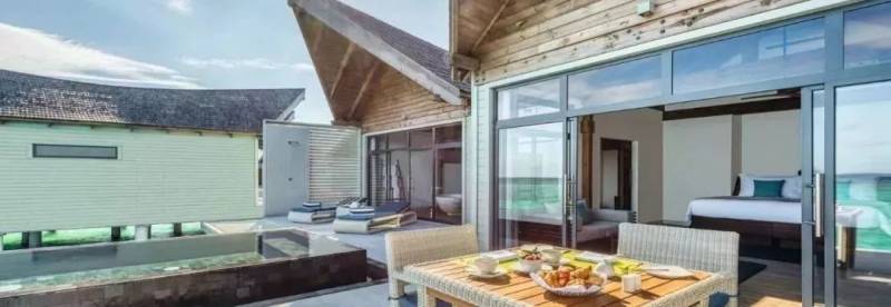 所有 72 套水上泳池别墅、30 间海滩泳池套房和 3 套海滩水疗泳池公寓均设有私人专属泳池。